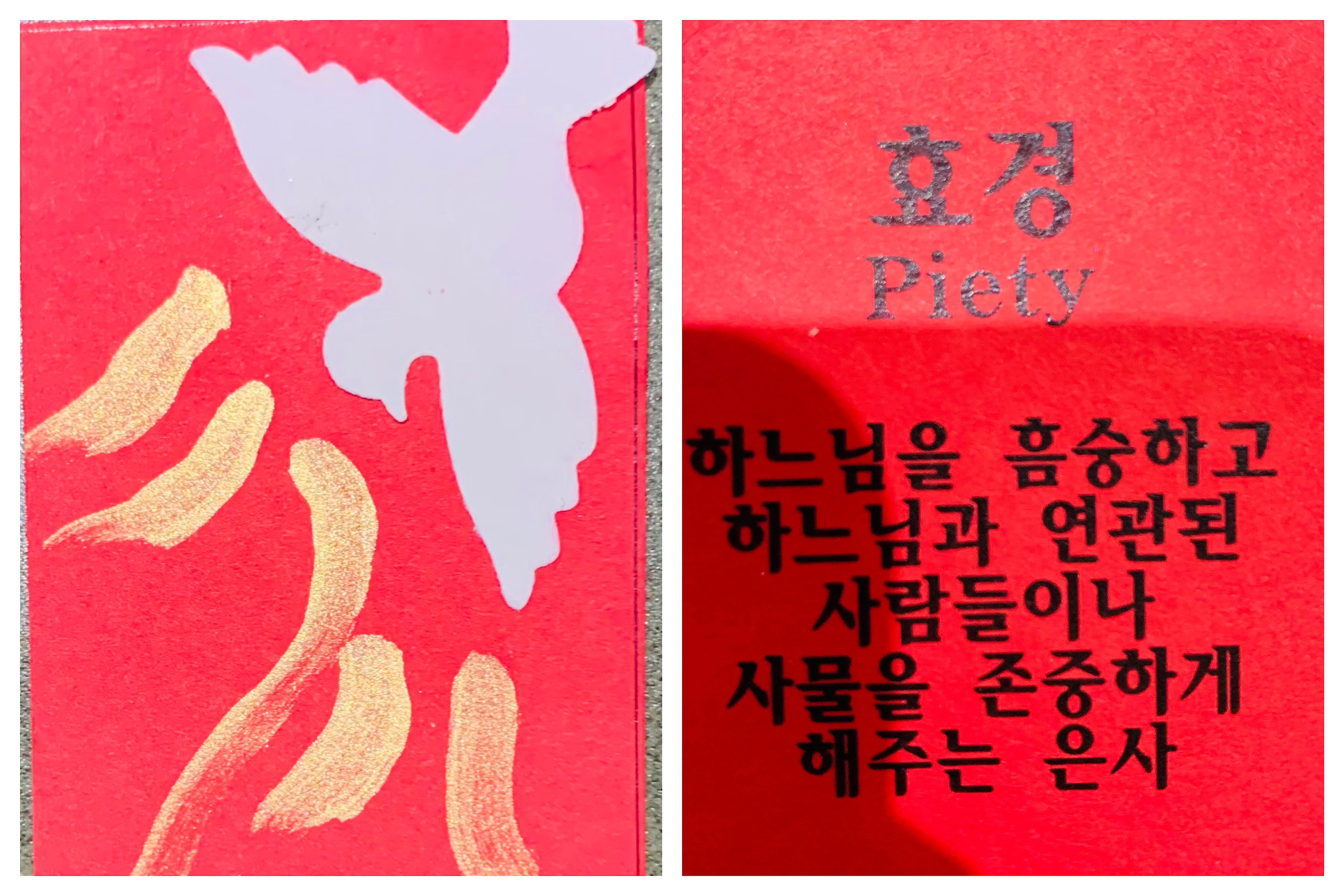But how could it be possible that my gift from God was Piety amid my own religious turmoil in soulβs dilemma? Indeed, there must be more than a respect for priests whom I think as presumptuous elitists inured to be respected, not accustomed to respect. Piety encompasses dutifulness, fidelity, allegiance, and loyalty, giving the impression of militaristic steadfastness. In my own words, I interpret this augury as indicating patience to endure and fulfill obligations till the ripe time and chance happen to me during my journey to a preordained end. My loyalty then requires fidelity of my consistent devotion to a job, filial duty, and the church by not falling wayside to the current instigation of a rebellious spirit. Am I not being an Oracle of the Holy Spirit?