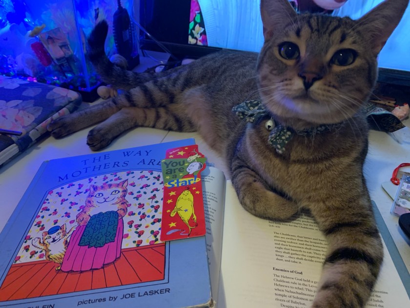 It is a story for all ages whose inner children refuse to grow beyond the evolutionary scale of time. Mark Twain, Lucy Maud Montgomery, and Walt Disney had never outgrown their childhood whose childlikeness became all the more radiant and illustrious with their boundless imaginations conjured in the alchemy of the arts. On a personal note, When I saw a tweet about this book, the forever child in me urged the grown-up me to get it because of the adorable illustrations of the Tabbies reminding me of my tabby cat Toro. I wonder if Toro’s mother might have looked like the Mother Cat because the son cat takes a solid resemblance to Toro. So I read the book to Toro, and he seemed to like it, starting to close his eyes on my desk and then purring softly. And I understand Mother Cat’s love for her son because that is how I feel for my little Toro, whom I adopted when he was nine weeks old. Now he is 11 months old, and although he is a sweetheart, his occasional Zoomies and forceful nibbling surprise me. Still, Toro is my cat. And I say to him every day thus: “I love you, Toro. Never forget that.” I know how the mother cat felt for her dear son.
