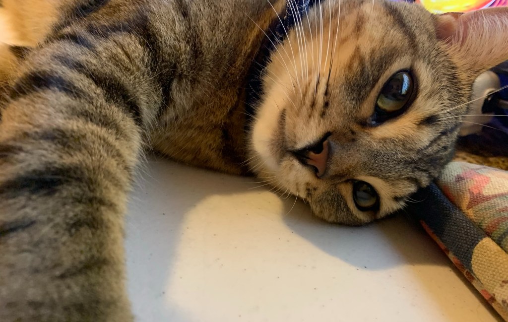 P.S.: This little poem is written as an ode to my fourteen-month old cat Toro in celebration of one-year anniversary of his adoption from a shelter. When I look at his large light green eyes, I see a world of his own composed of stars, moons, and suns – all in the mystery of the unknown galaxy far away from the end of the farthest known star. As George Orwell referred one man’s death to a condition of one world less in the whole universe, my living with Toro means a cosmic show of birthing another world of stars from a beautiful emerald and diamond supernova.