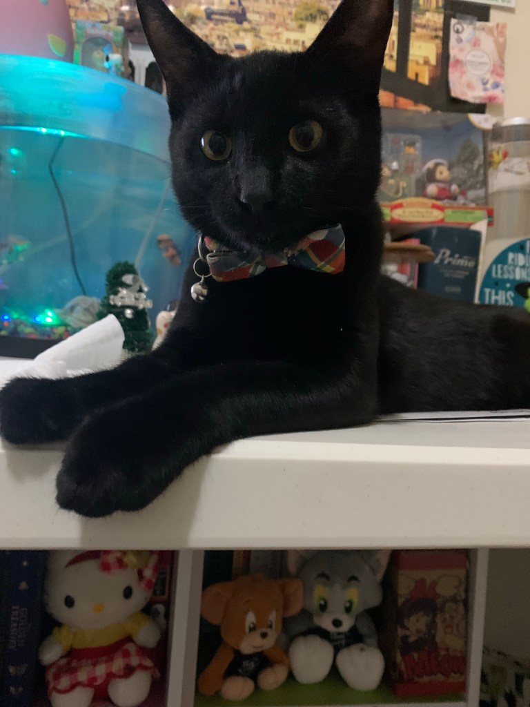 Camille is an unbelievably affectionate and sweet black cat whom I believe of a Bombay cat breed because of his velvety shiny, ebony fur. And he eats like an elephant. I always have to give him at least two cans of wet food per meal a day. Last night, I woke up to his throwing up sound, which made me swear that I would be more strict about satisfying his voracious appetite. But that was only a fleeting caution. He’s back to his usual self, which means eating like an elephant.